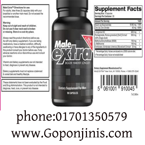 Male Extra Capsule is a Bigger, Harder, Longer Male Enhancement premium supplement that helps improve sexual performance and solve sexual problems. Male Extra Capsule specifically improves blood flow to the penis, increases stamina, increases testosterone levels, increases body hormones, and increases sperm count, and helps men increase penis size by 1-2 inches, and improves orgasm quality and restores confidence. This supplement is specifically designed for adult men. If you have any questions about Male Extra Capsules, contact us directly: 01701350579.